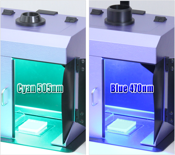 cutting system now comes with built-in LED lights! You can select from two types of light sources (blue 470 and Cyan 505 nm) that can be chosen based on the fluorescent reagent used. |