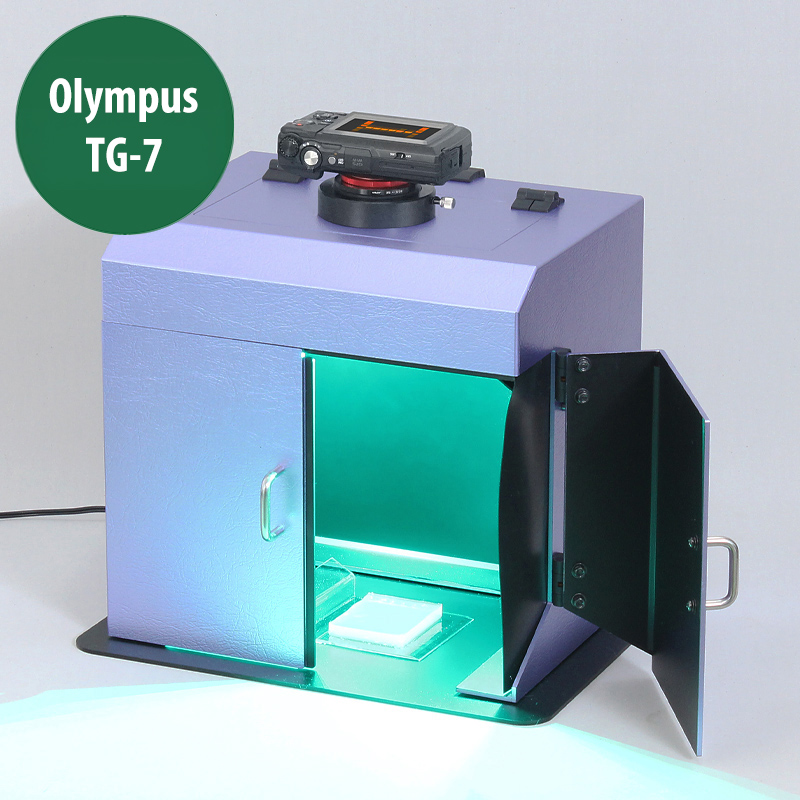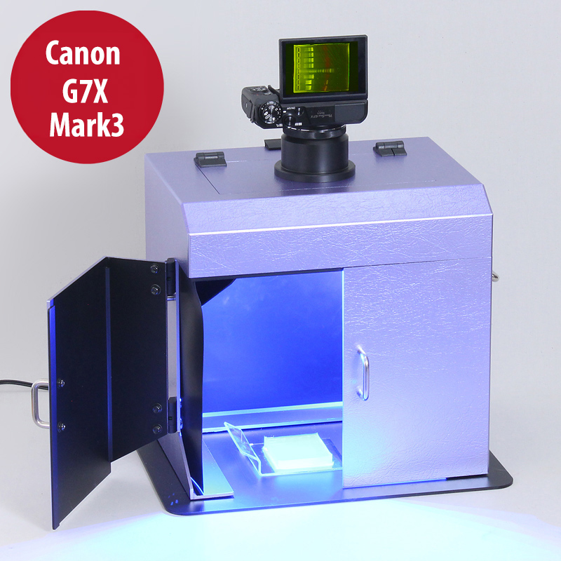 | Compatible with most UV/LED Transilluminators. Pict-Labox can be used on top of most fluorescent excitation light sources if it has a more than 220 mm wide surface with no projections. (Smaller sizes may be fit inside the box) |